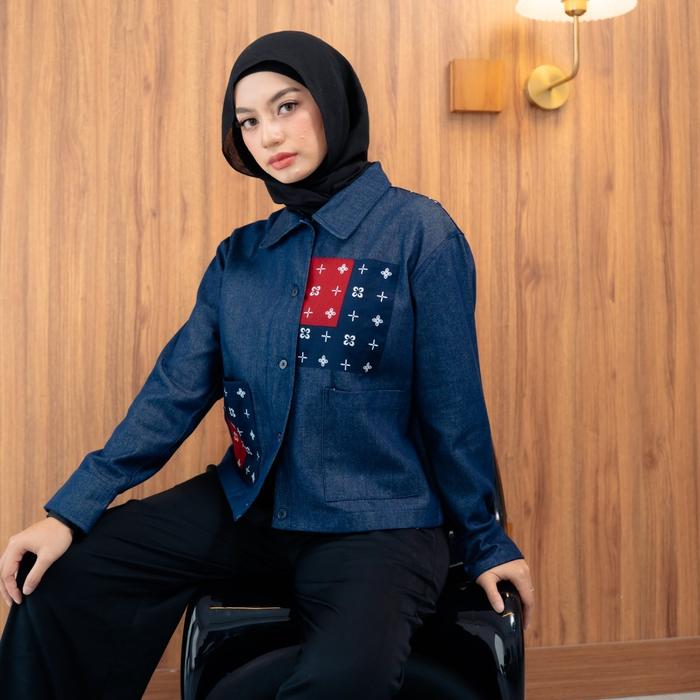 S E I A | JAKET DENIM WANITA PATCH BATIK - SEWAKTU, JUMBO