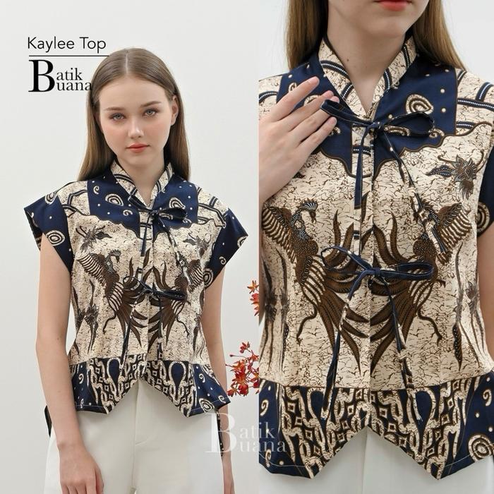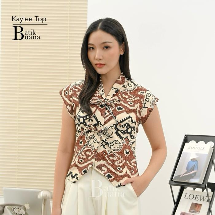 [BATIK BUANA] KAYLEE - BATIK WANITA - BATIK VEST- ATASAN BATIK MODERN - BLOUSE BATIK - CREAM AAG, STANDAR