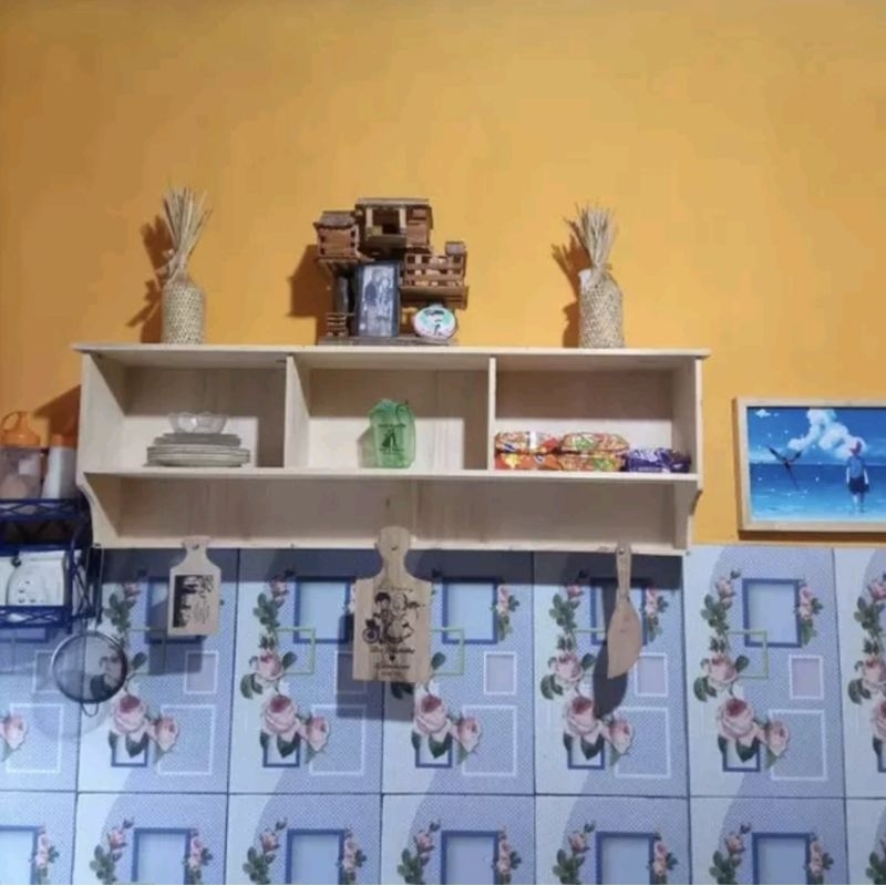 lemari dapur gantung Set / Rak dapur / Lemari Gantung / rak bumbu besar ukuran 80cm kayu pinus kuat lemari dapur gantung