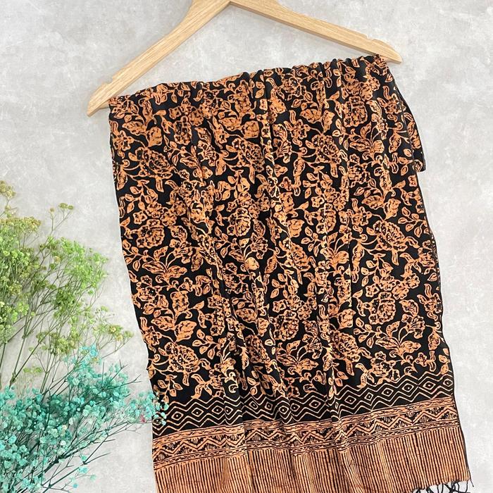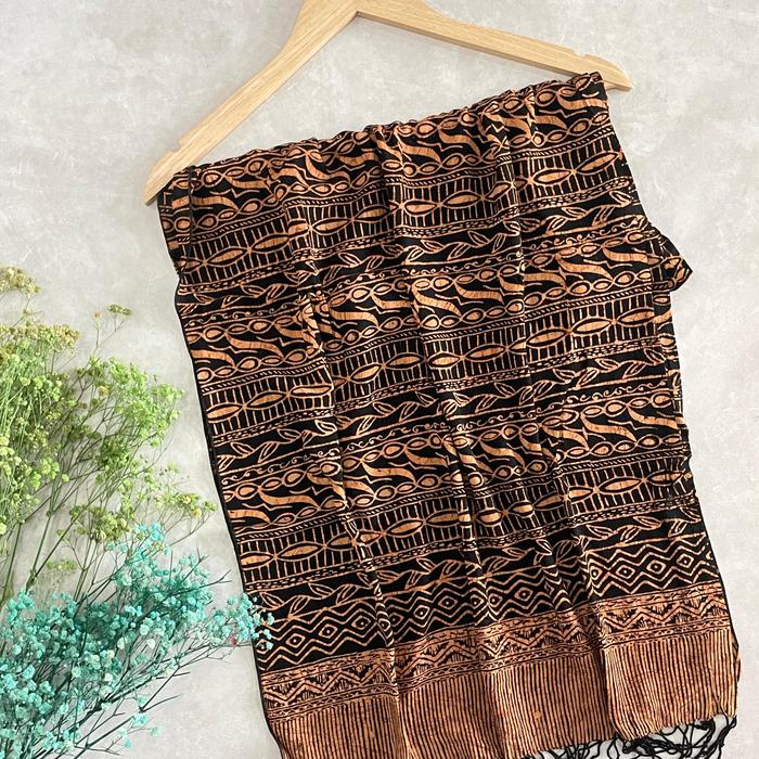 SYAL BATIK SELENDANG BAHAN PARIS REMEKAN COKLAT KLASIK KHAS TRUSMI CIREBON - 1