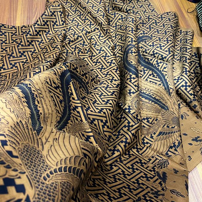 KAIN BATIK BAHAN KATUN MOTIF MERAK LATAR ANYAMAN WARNA ALAM TANAHAN
