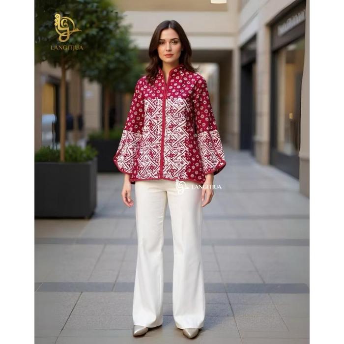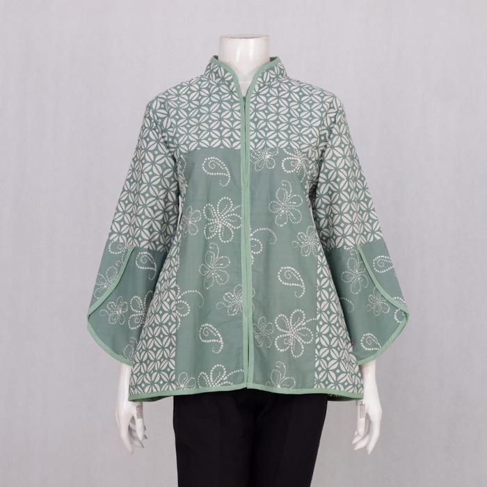 SAMITHA 02 BLUS BATIK ATASAN BAJU KERJA WANITA LENGAN TULIP LANGITJUA BATIK SOLO BAHAN KATUN OVERSIZE CASUAL CEWEK D3W4SA SIZE S-XXL RESLETING DEPAN KRAH SHANGHAI - HIJAU SAGE 1, M