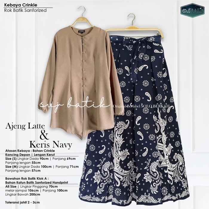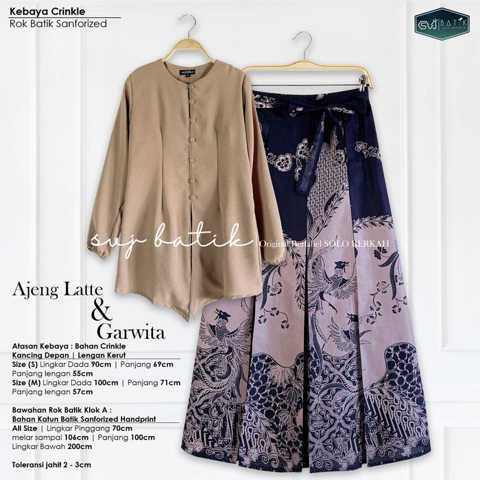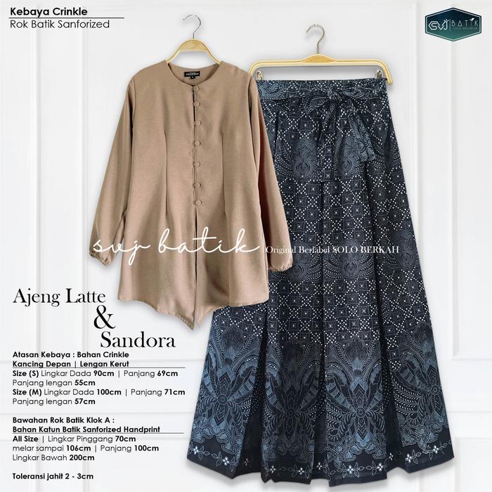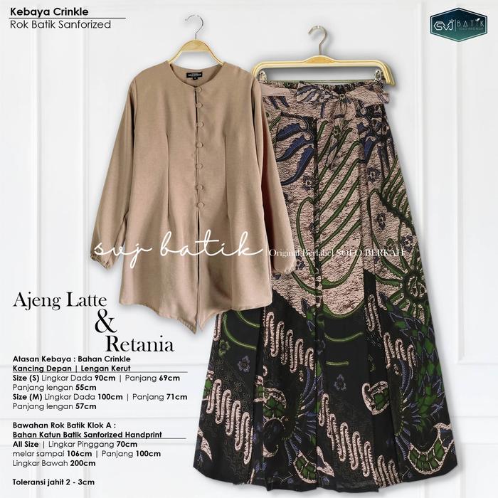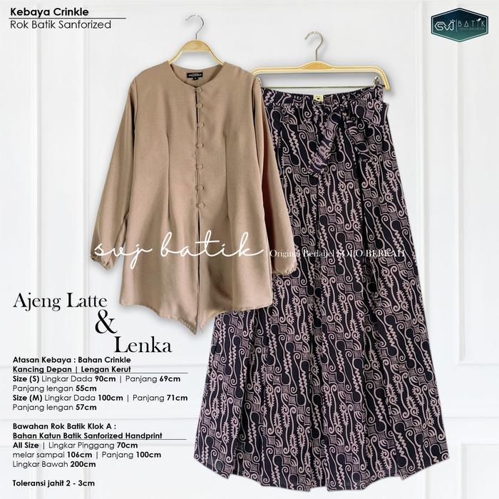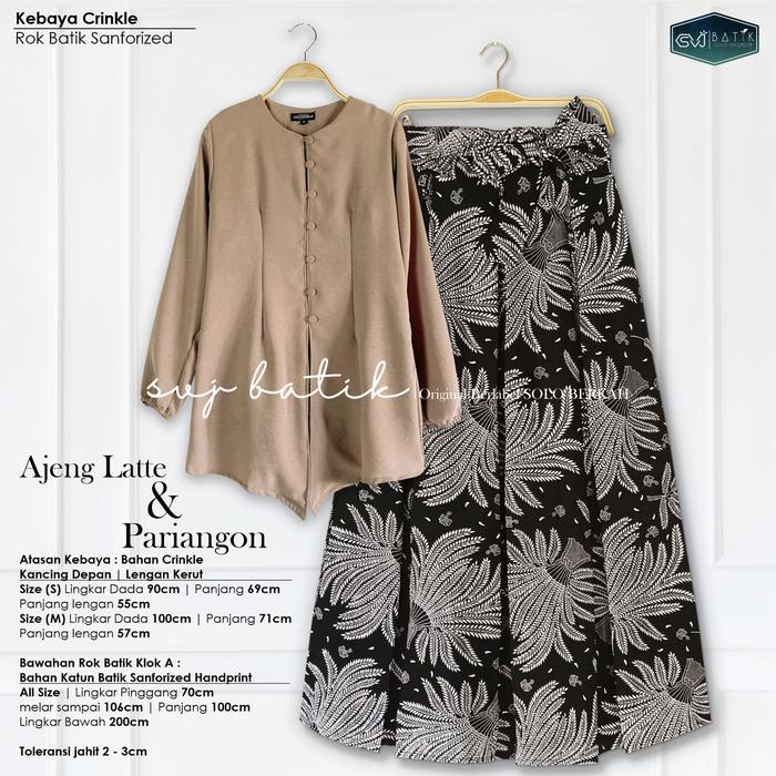 SETELAN KEKINIAN BATIK SET ROK ATASAN KEBAYA AJENG LATTE BAJU KONDANGAN BATIK KATUN MIX CRINKLE SVJ ROK KATUN JARIK SUPER - MAYORA, SET KEBAYA LATTE+ROK