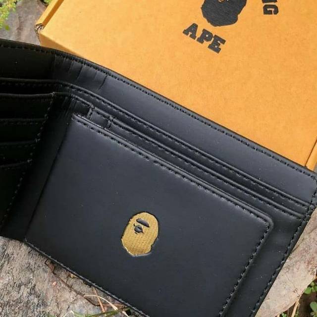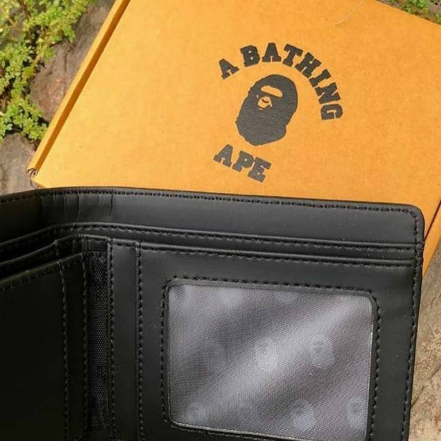 Dompet Bape Hitam Dilipat Dengan Sticker Gratis