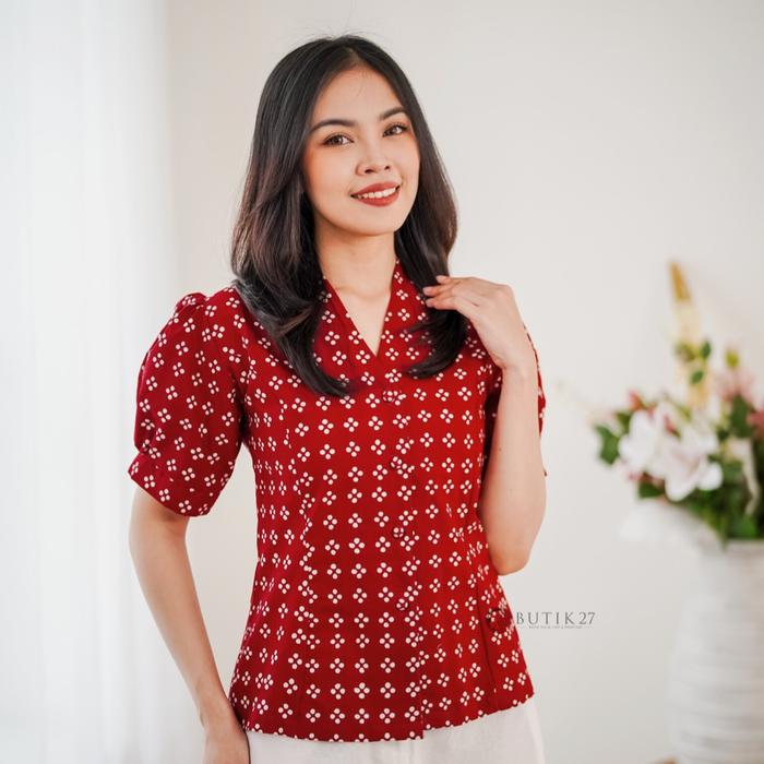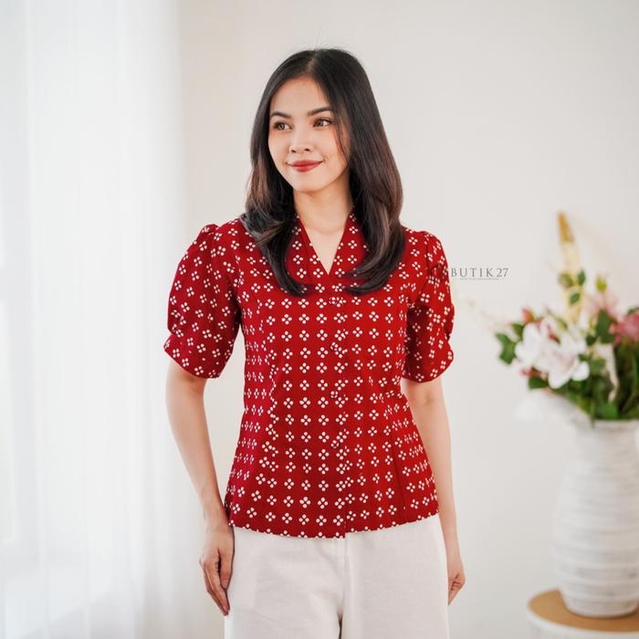 BUTIK27 - EILEEN BLOUSE BATIK MERAH - NAVY - MERAH, XS