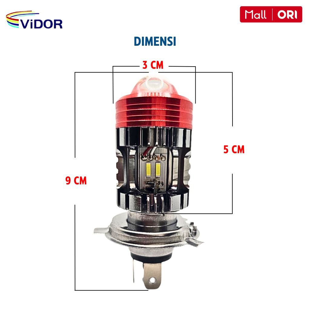 ViDOR Lampu Led Utama Motor VIXION Projector Laser H4 / HS1 AC/DC, 18 + 18 WATT, Plug N Play