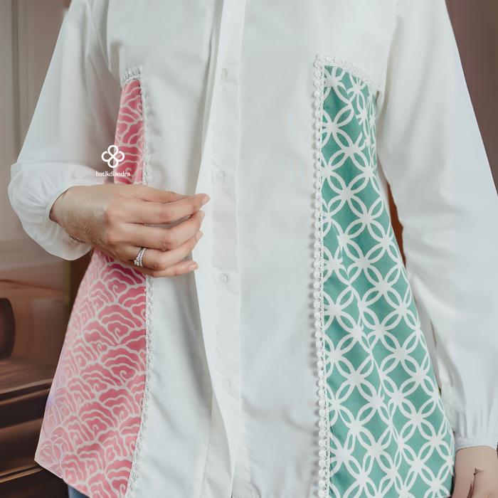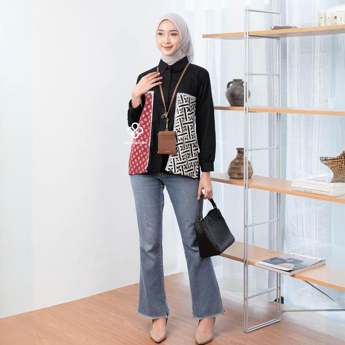 DELIMA BLOUSE- BATIK KEKINIAN-BATIK MODERN-BATIK KERJA-BATIK CASUAL - BLACK , LD 92