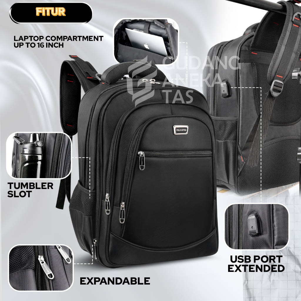 TAS KERJA POLO GIVES Tas Ransel POLO Original Import 18 Inch + Free Raincover + Free USB Ransel Sekolah IMPORT