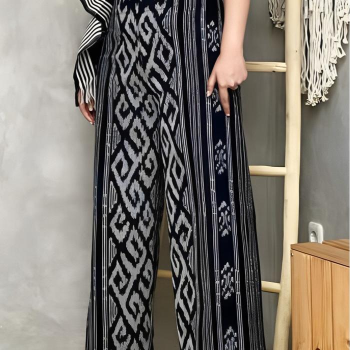 CELANA PANJANG KULOT TENUN ASLI JEPARA BAWAHAN WANITA REMAJA VIRAL KAIN KARET NYAMAN SANTAI SERUT D3W4SA MELAR MOTIF KATUN HARIAN KANTONG BATIK - HITAM BL