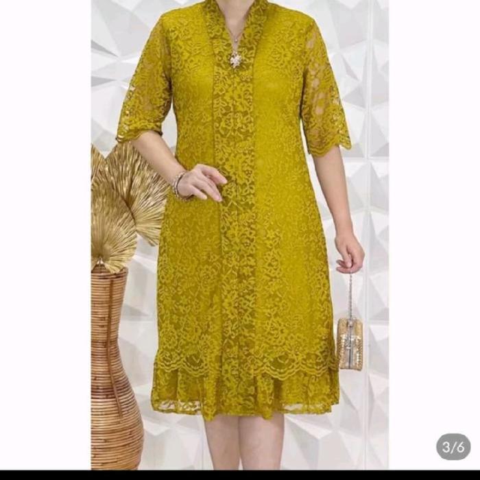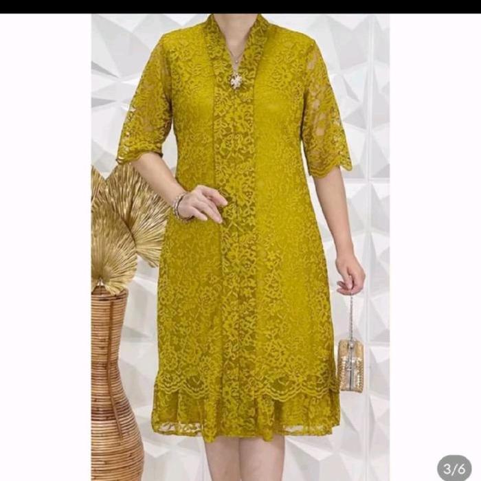 DRES KEBAYA NATAL -DRES KEBAYA KONDANGAN - DRES KEBAYA KEKINIAN VIRAL 2025 /DRES CATLINE BROKAT - LEMON, M