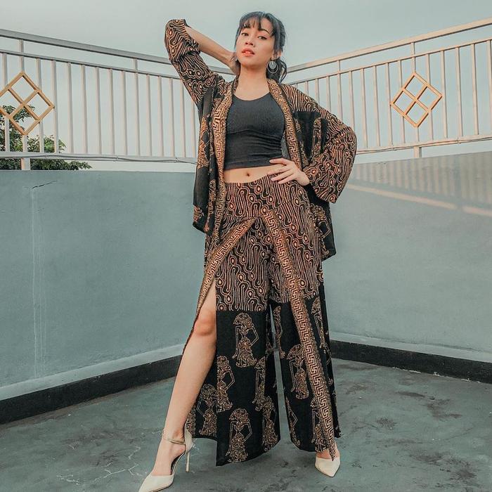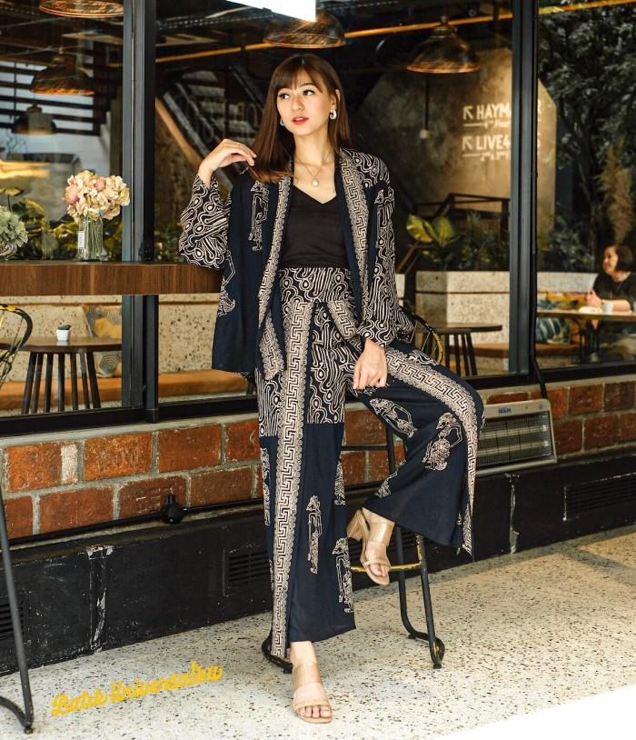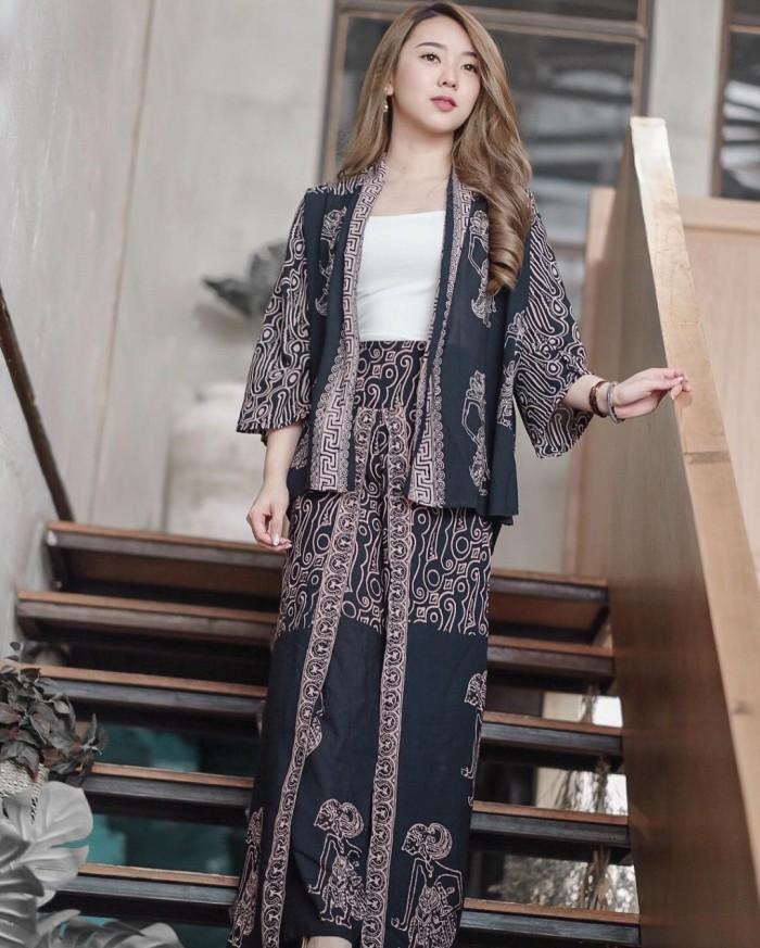 SETELAN BATIK WANITA CARDIGAN CELANA WANITA - BIG PARANG WAYANG - SOGAN , CELANA TERBUKA