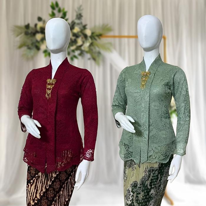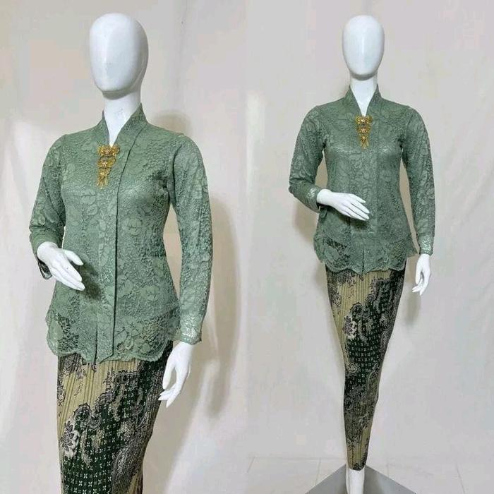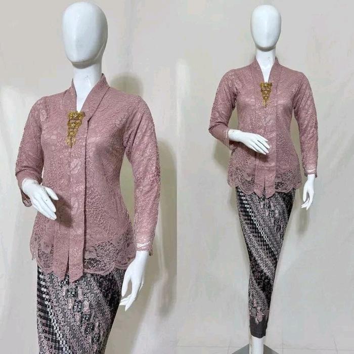 SETELAN KEBAYA MODERN FLOY KARTINI BROKAT LENGAN PANJANG REKOMENDASI KEBAYA KONDANGAN WISUDA DAN LAMARAN - MOCA, SETELAN M