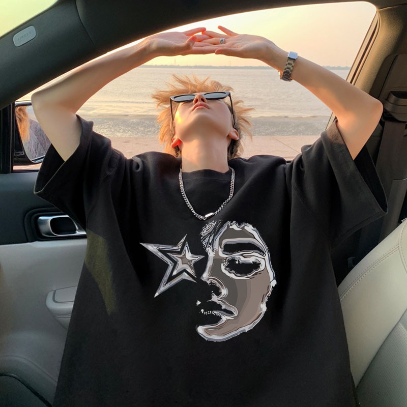 TINY Tshirt Oversize Baju Kaos Pria Distro Original 100% Tebal Bintang Menghadapi pencetakan Amerika Retro Kaos Pria Ker
