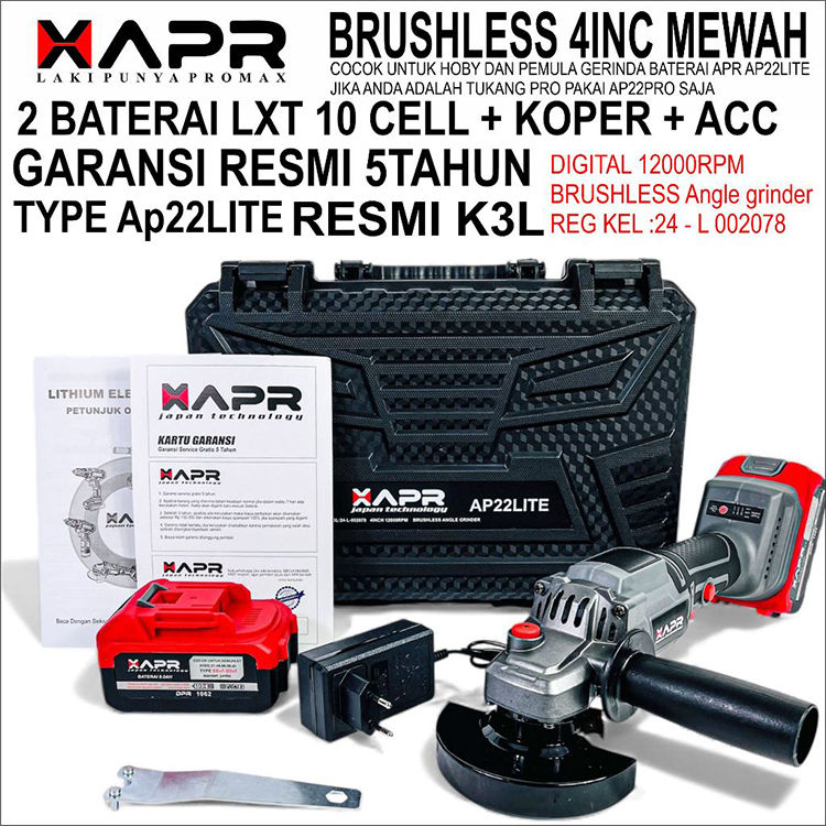 Gerinda Baterai XAPR AP22 Lite 4inch 12000rpm brushless 2btre lxt 10cell apr