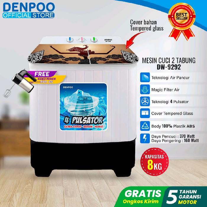 Denpoo Mesin Cuci 2 Tabung DW 9292 4P Kapasitas 8 KG
