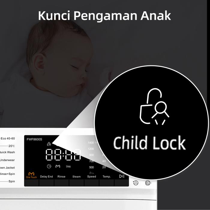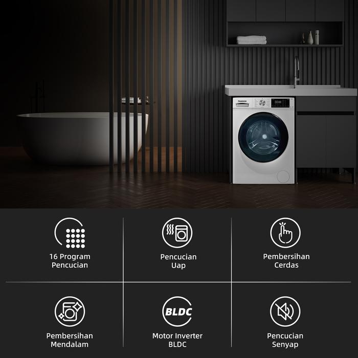 Changhong Mesin Cuci Smart Front Loading Kapasitas 10 kg Model FWF1200S - Bukaan Depan - NEW ARRIVAL