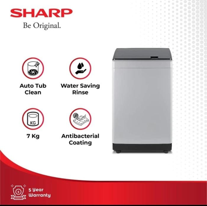 SHARP Mesin Cuci Top Loading 7kg ES-M7000P-GG Baru Bergaransi Resmi Eco Logic System & Zero Pressure