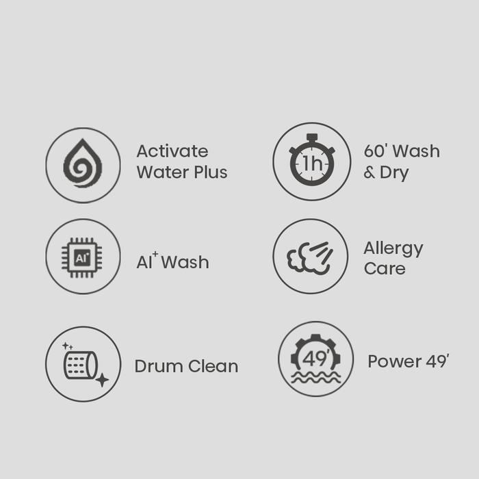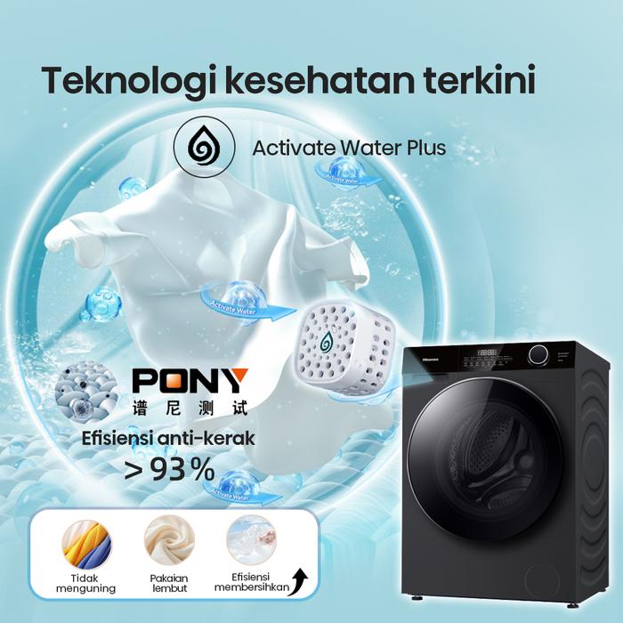 Hisense-WD105M3/WF105M3-Mesin Cuci 10.5KG-Activate Water Plus-60' Washs Dry-Ai+Wash+Allergy