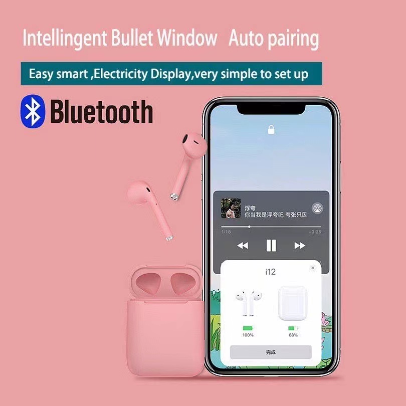 Mini portabelWarna Baru i12 Earbud Kontrol Sentuh Nirkabel TWS Headset Bluetooth 5.0 Headset Stereo Olahraga