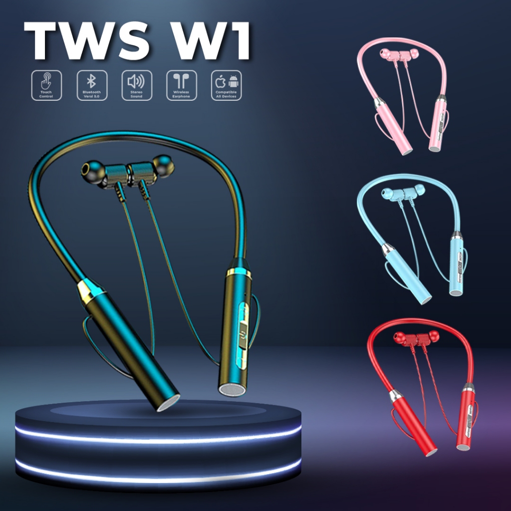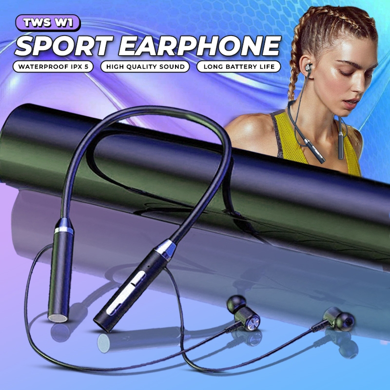 MOCHO Headset Bluetooth Neckband Sport Bass Leher Gantungan W1 Style Micro USB MP3 Music door and Indoor