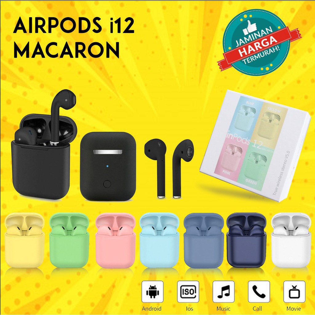 Headset Bluetooth Pintar Grosirheadset bluetooth EARPHONE 12 Macaron 12 i12 TWS Headset Bluetooth