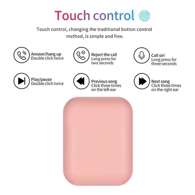 Mini portabelWarna Baru i12 Earbud Kontrol Sentuh Nirkabel TWS Headset Bluetooth 5.0 Headset Stereo Olahraga
