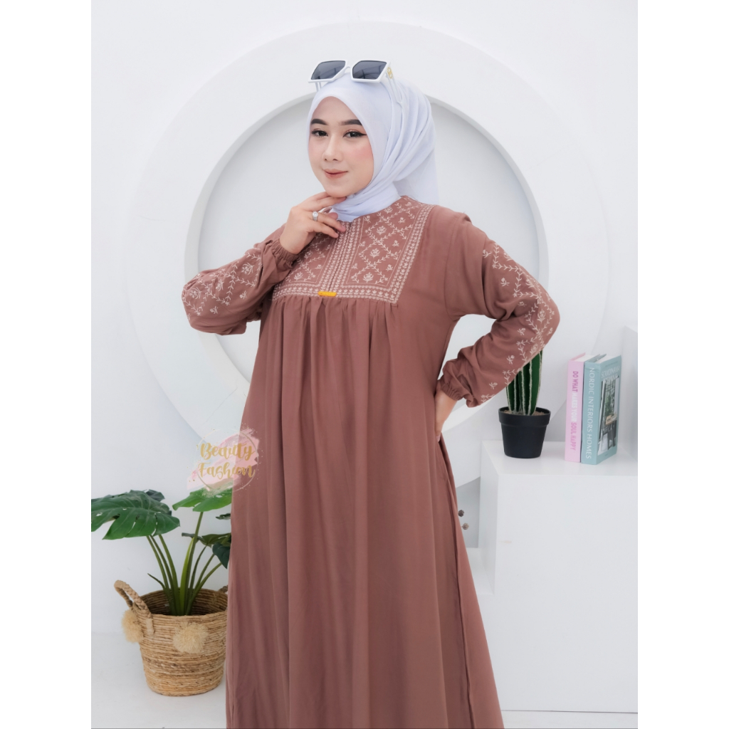 Gamis Rayon Twill Bordir Wanita KAYLA Premium Terbaru Busui Friendly Dress Motif Model Kekinian