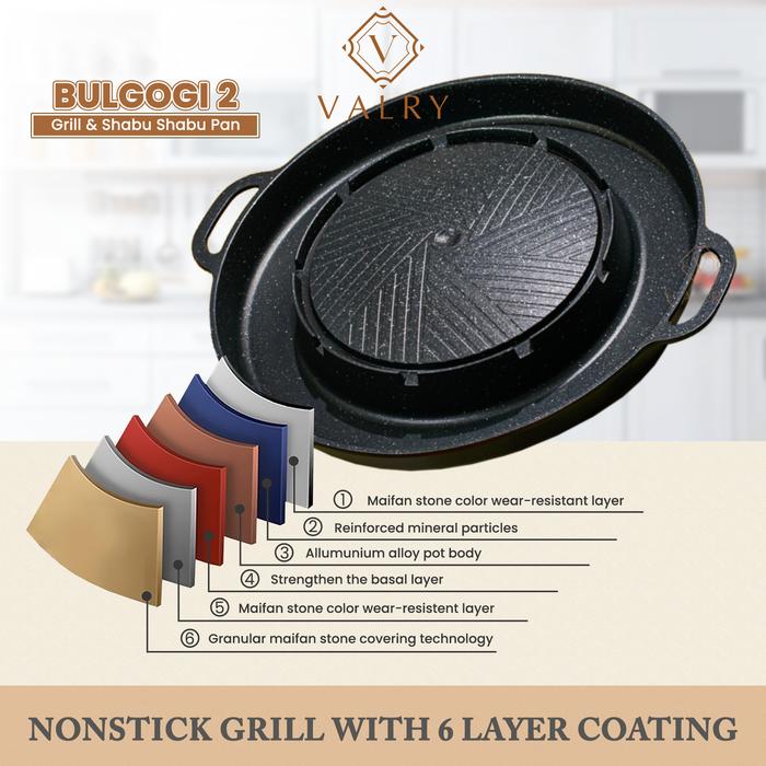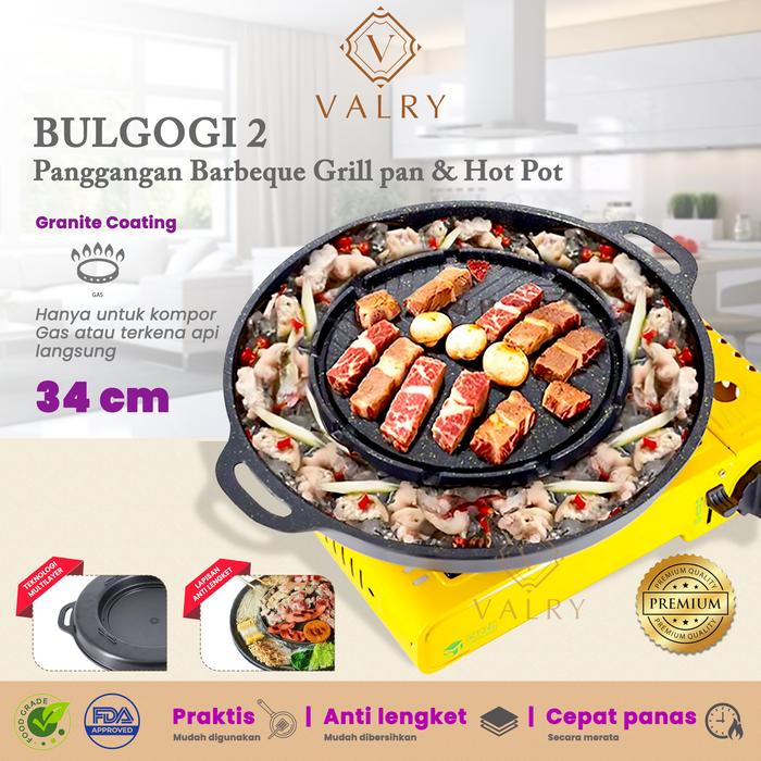 VALRY BULGOGI 2 GRILL PAN BBQ PANCI SHABU SHABU PAN ALAT PANGGANG ANTI LENGKET MARBLE GRANIT WAJAN PANGGANG DUO FUNGSI MEMANGGGANG SEKALIGUS STEAMBOAT SUKIYAKI KUAH