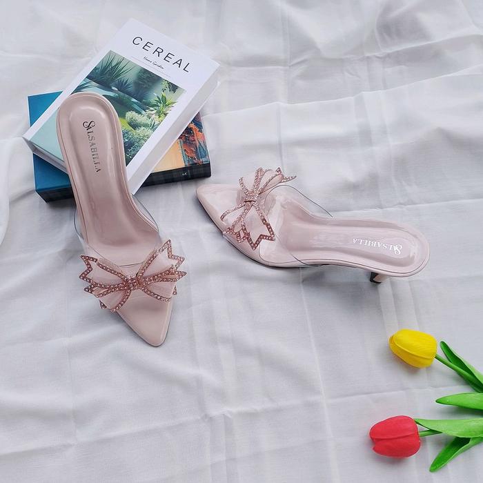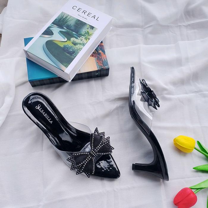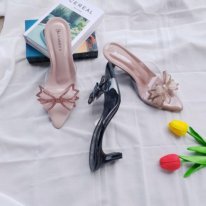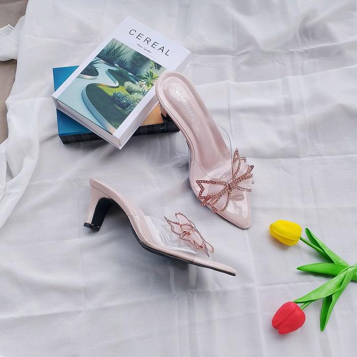 MIKA SENDAL HEELS WANITA MOTIF KUPU-KUPU KF-002 NYAMAN RINGAN COCOK UNTUK BERBAGAI ACARA WARNA CREAM SIZE 37-40 - SANDAL - HITAM, 37