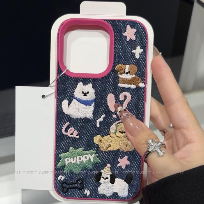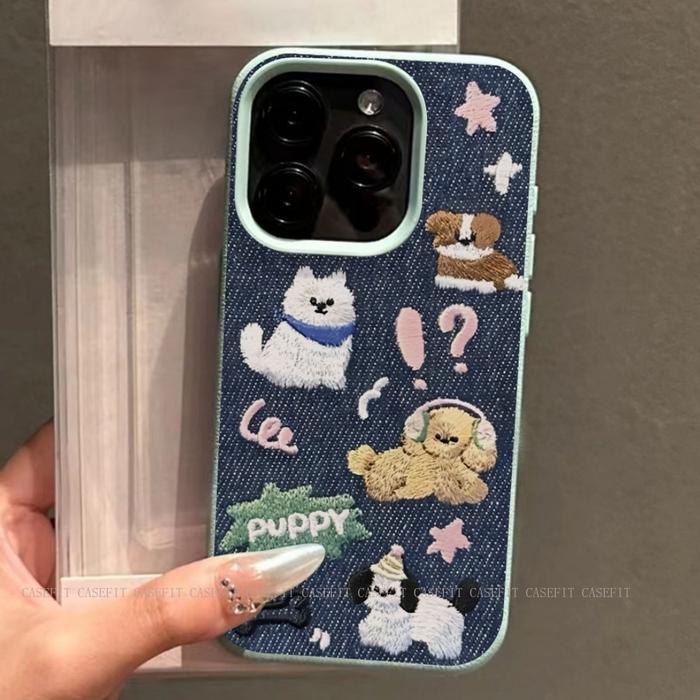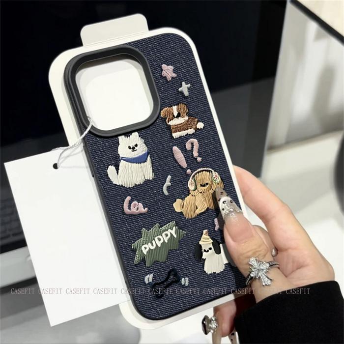 CARTOON EMBROIDERED COWBOY PUPPY COUPLE CASE FOR IPHONE 11 12 13 14 15 16 PRO MAX XR X XS MAX 15 14 PLUS SOFT ACCESSORY CASING PROTECTION SHOCKPROOF PHONE COVER CASE【IJ09】 - IJ09-BLACK, IPHONE 11