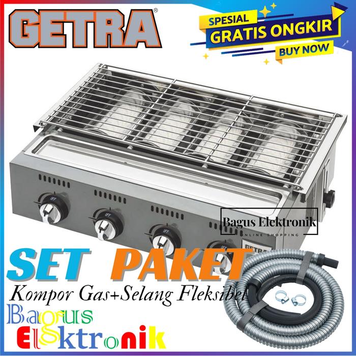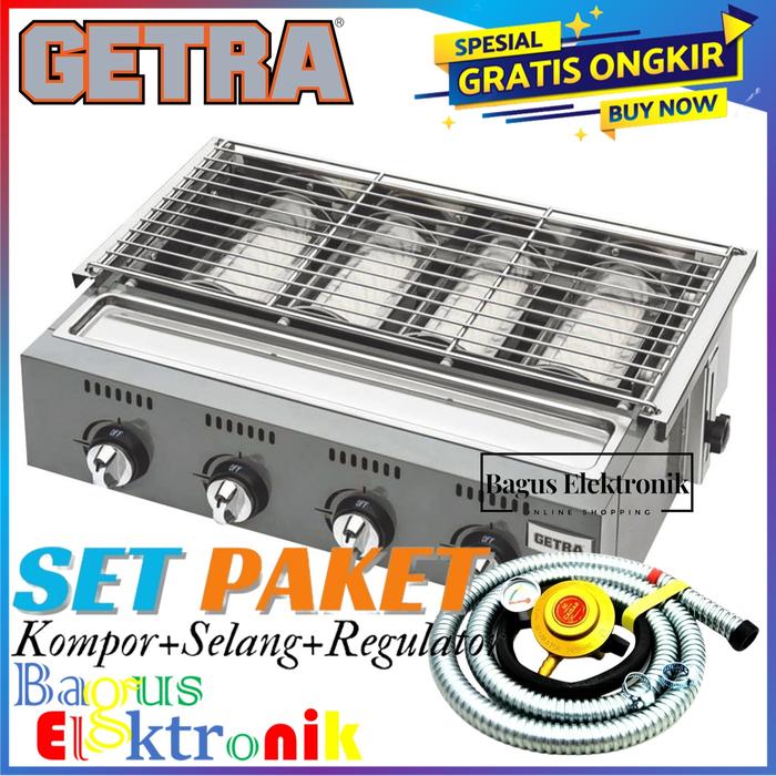 KOMPOR PANGGANGAN 4 TUNGKU GETRA OL 4B KUALITAS KOMPOR BBQ GRILL TANPA ASAP GAS PANGGANGAN SOSIS KOMPOR 4 TUNGKU GARANSI - KOMPOR SAJA