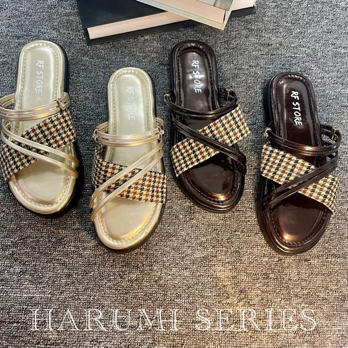 RF STORE HARUMI SERIES SANDAL WANITA TERBARU KEKINIAN SUPER EMPUK SENDAL KARET CEWEK - GOLD, 37