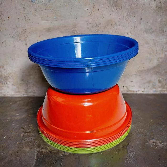 12 PCS BASKOM PLASTIK 25 CM BASKOM MURAH BASKOM PLASTIK HAJATAN BASKOM PLASTIK MOTIF POLOS BASKOM MERAH BIRU HIJAU - HIJAU, 1 PCS