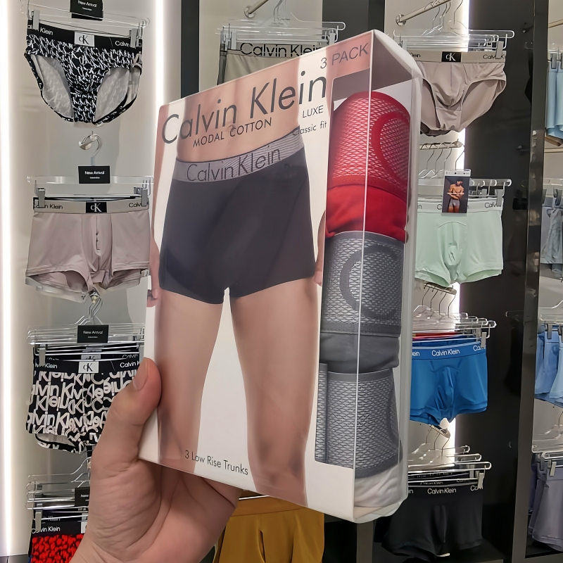 Celana dalam pria Calvin Klein - celana boxer modal pinggang sedang - pembelian resmi CK dari luar negeri, paket kotak h