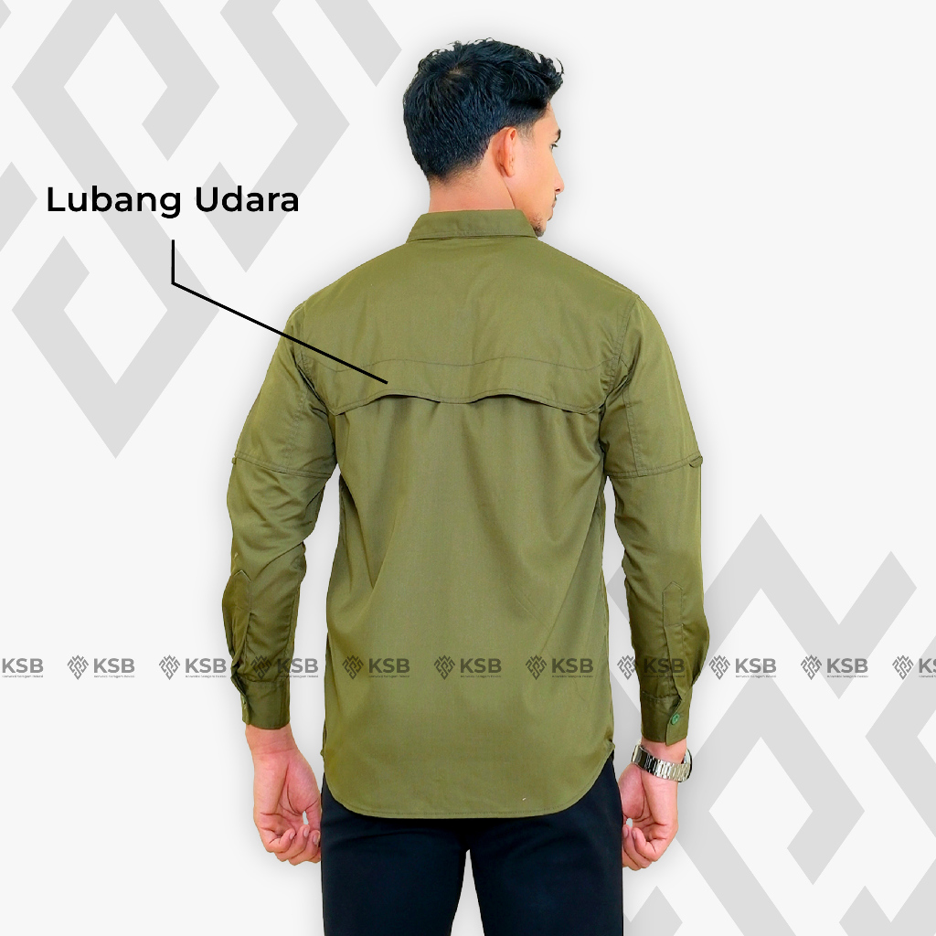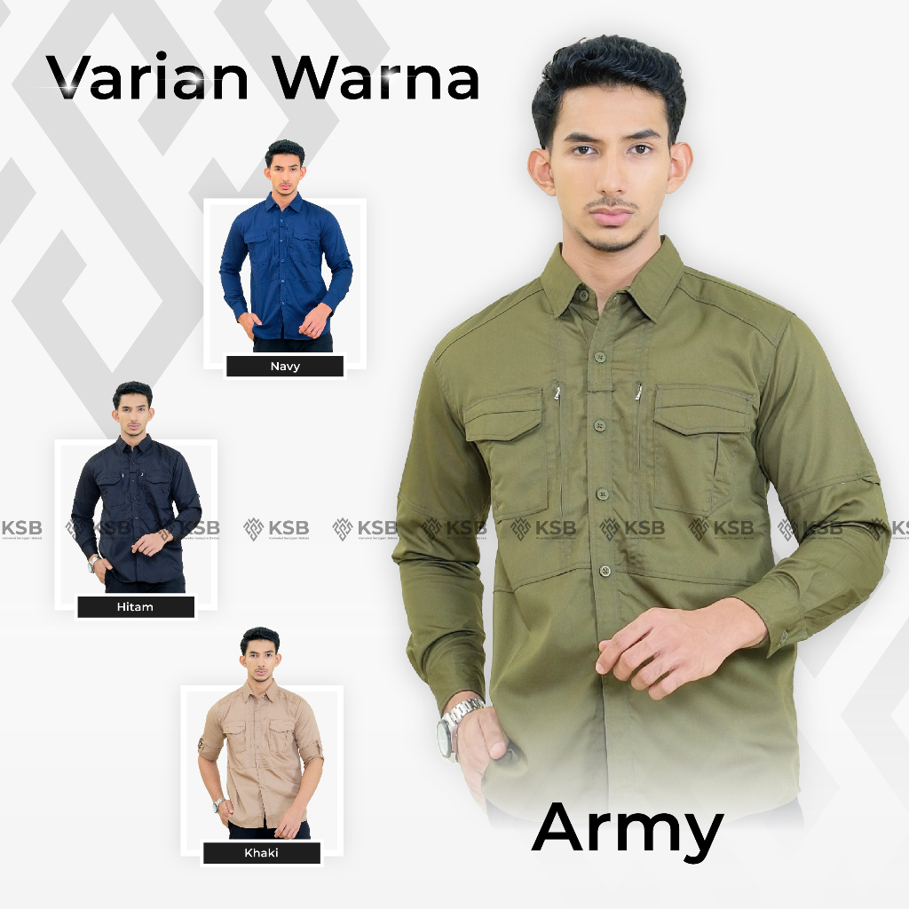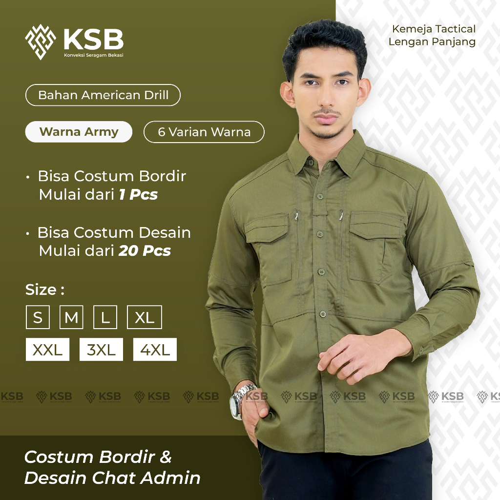 Baju Tactical Pria Lengan Panjang Hijau Army Bahan American Drill