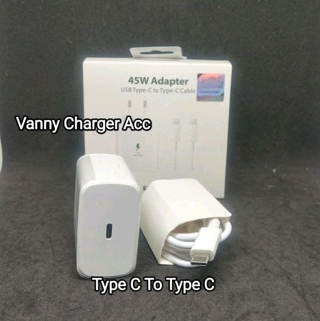 CHARGER SAM 45W ORIGINAL PD ADAPTER + KABEL TYPE C TO TYPE C SUPER FAST CHARGING - HITAM TYPE C