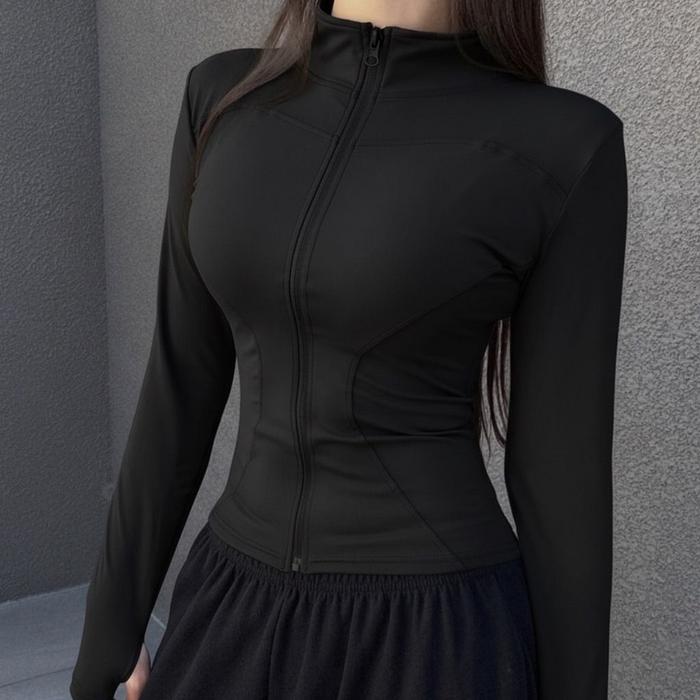 RR JAKET OLAHRAGA LENGAN PANJANG FIT BODY WANITA YOGA PILATES LARI GYM FITNES PREMIUM QUALITY STYLE KOREA - CARAMEL, M
