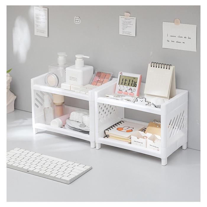 RAK SERBAGUNA PORTABLE MURAH MEJA PLASTIK KOSMETIK MINI RAK MEJA KECIL MULTIFUNGSI RAK DAPUR RAK KAMAR MANDI PINK PUTIH RAK STIKER - PUTIH