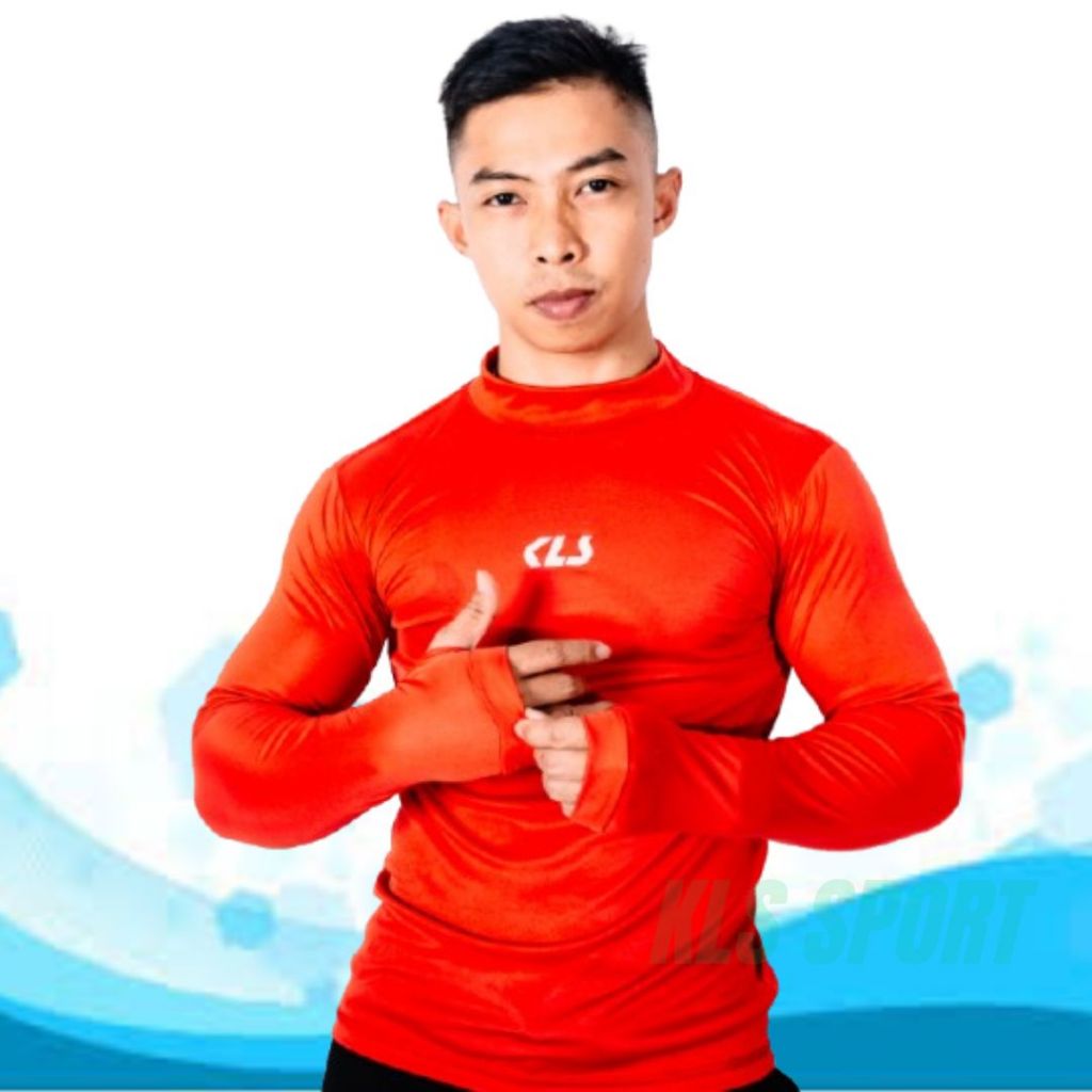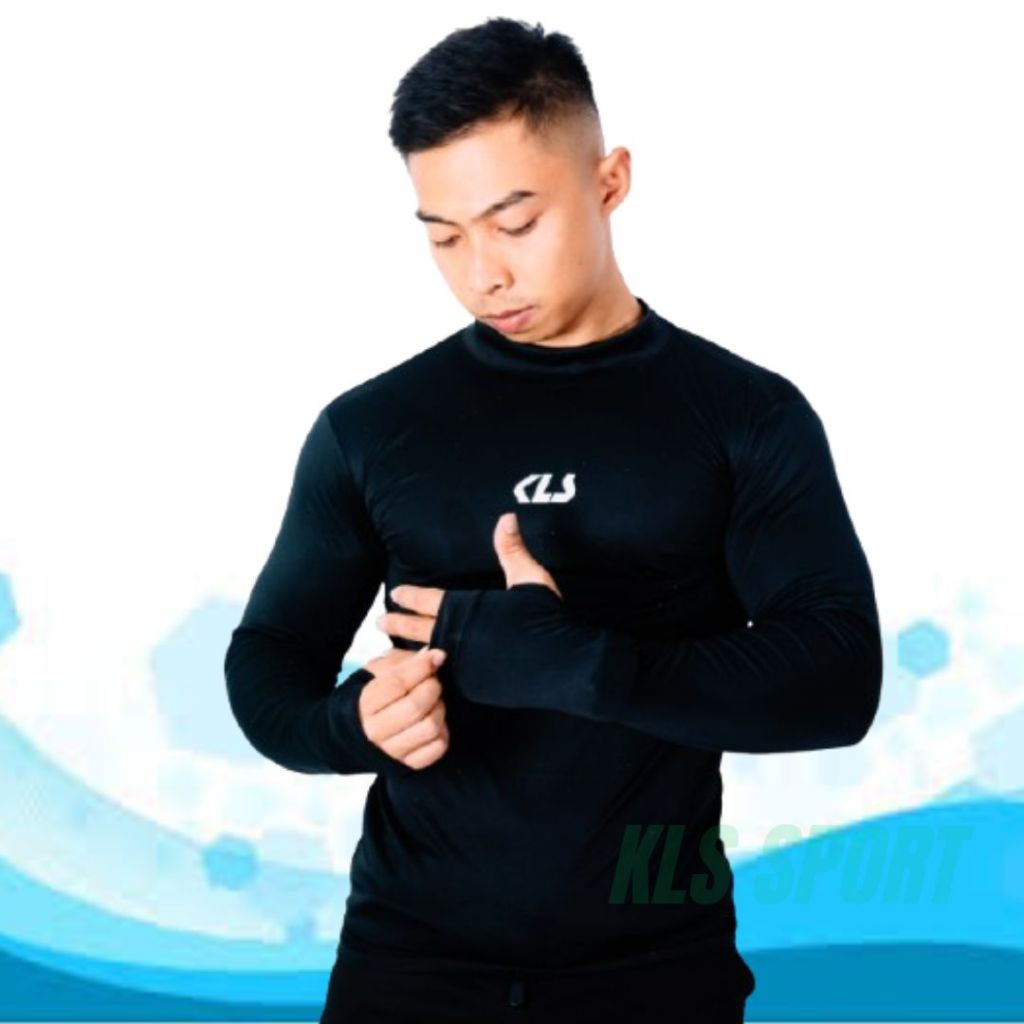 Baselayer KLS Manset Olahraga Lengan Panjang, Baju Mangset Voli dan Futsal, Base Layer Pria Wanita Thumbhole Lubang Jari
