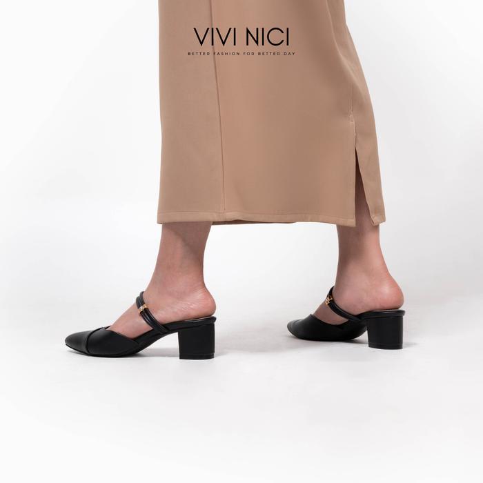 VIVI NICI - RAWLES SANDAL MULES HAK 5 CM SHOES WANITA SENDAL WANITA HEELS WANITA SEPATU KONDANGAN PESTA - BLACK, 36