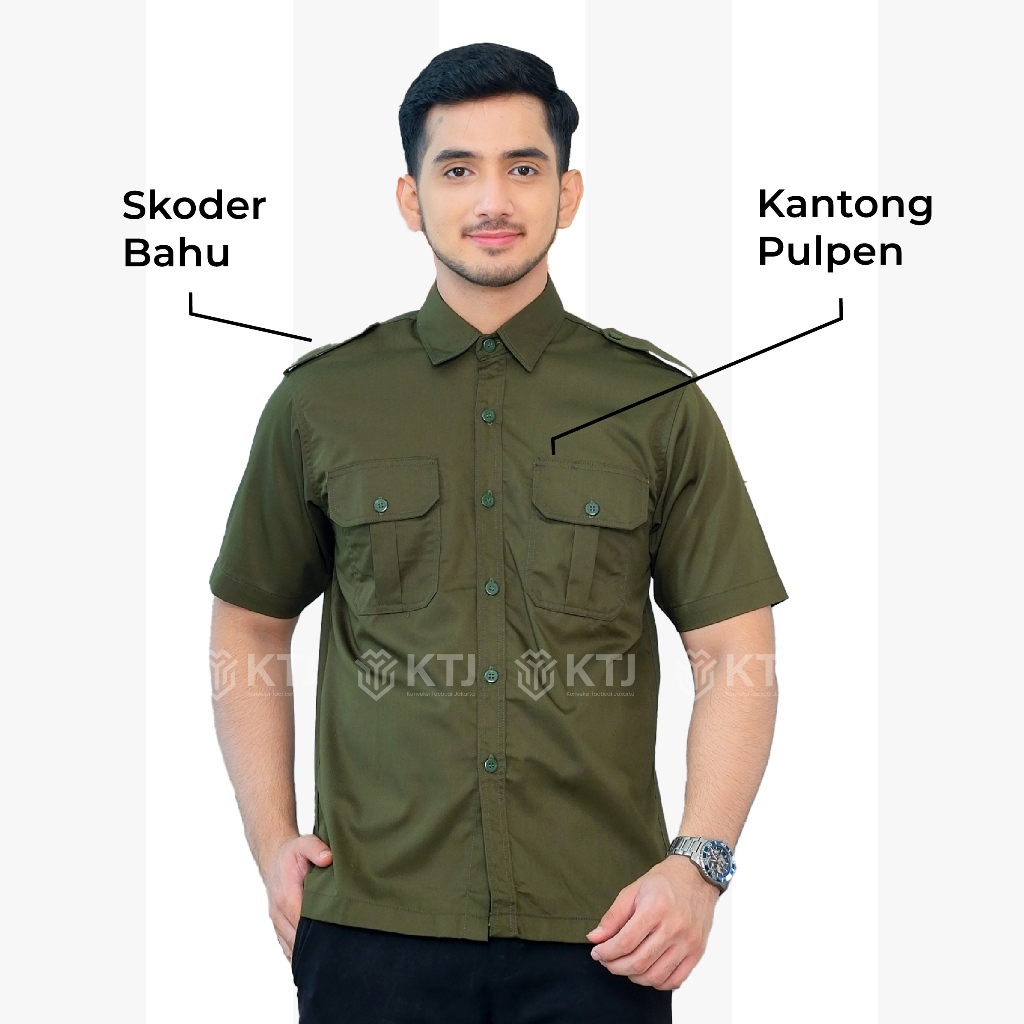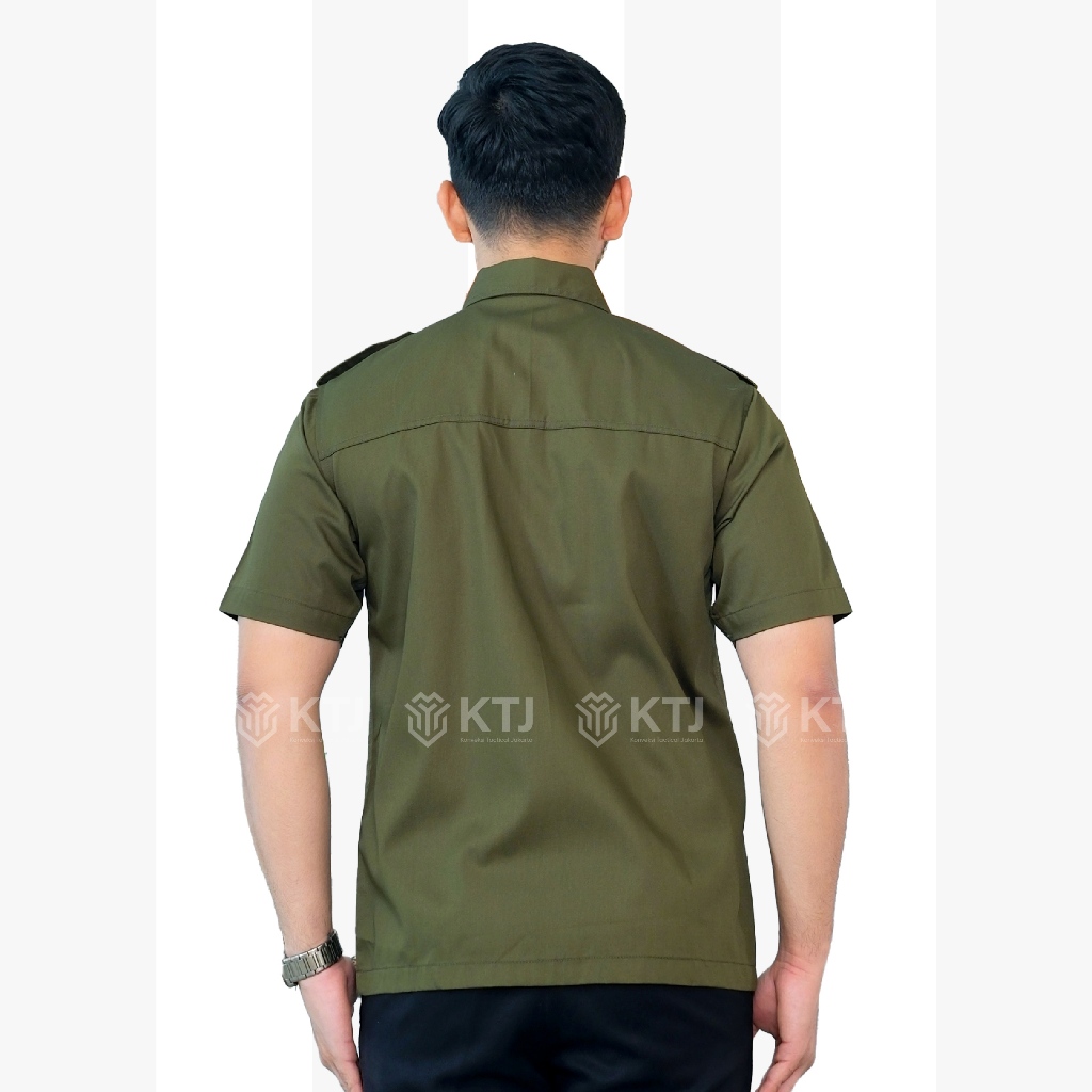 Kemeja PDL PDH Seragam Kerja Lapangan Lengan Pendek Hijau Army Custom Bordir