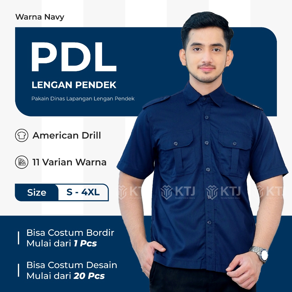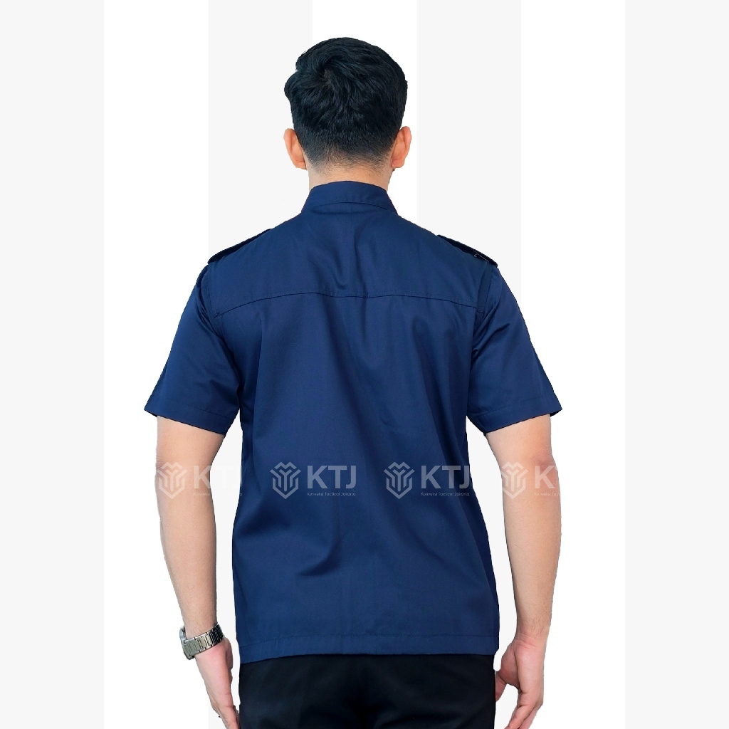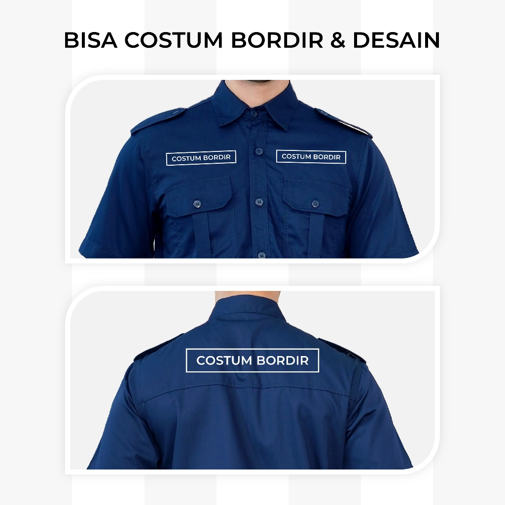 Kemeja PDL PDH Seragam Kerja Lapangan Lengan Pendek Navy Custom Bordir