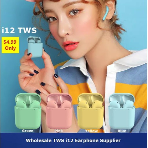 Headset Bluetooth Pintar Grosirheadset bluetooth EARPHONE 12 Macaron 12 i12 TWS Headset Bluetooth