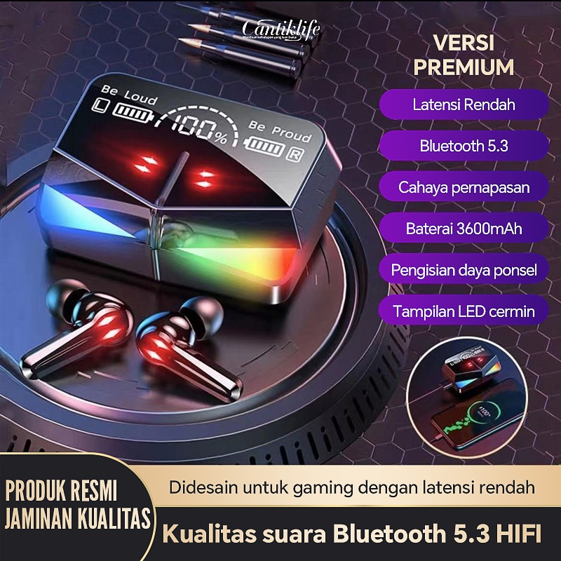 TWS M28 Bluetooth 5.3 Stereo Bass Headphone Dengan Mic & LED Display