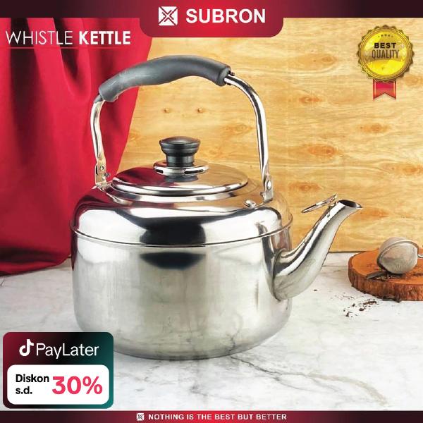 SUBRON WHISTLE KETTLE TEKO PELUIT BUNYI PEGANGAN ANTI PANAS 4 LITER 5L 6L TEH KOPI SUSU MIMASAK STAINLESS KITCHENWARE - 4 LITER