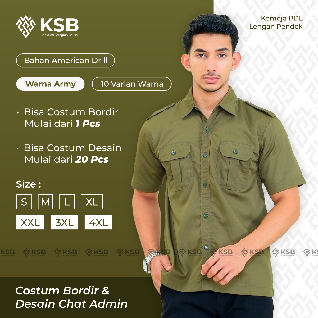 Seragam Kerja PDL PDH Lengan Pendek Pria Wanita Warna Hijau Army