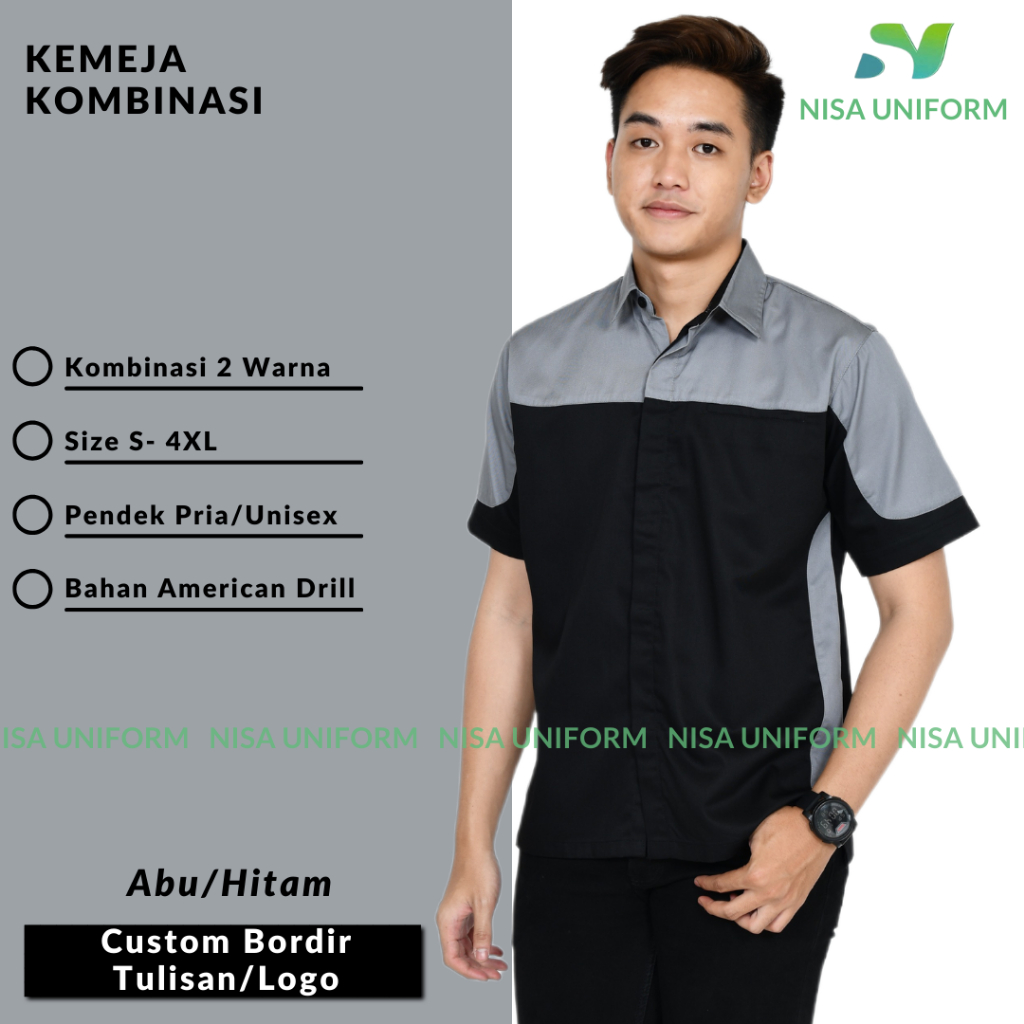 Baju kerja polos custom bordir/kemeja seragam karyawan kantor/hem seragam atasan kombinasi pendek