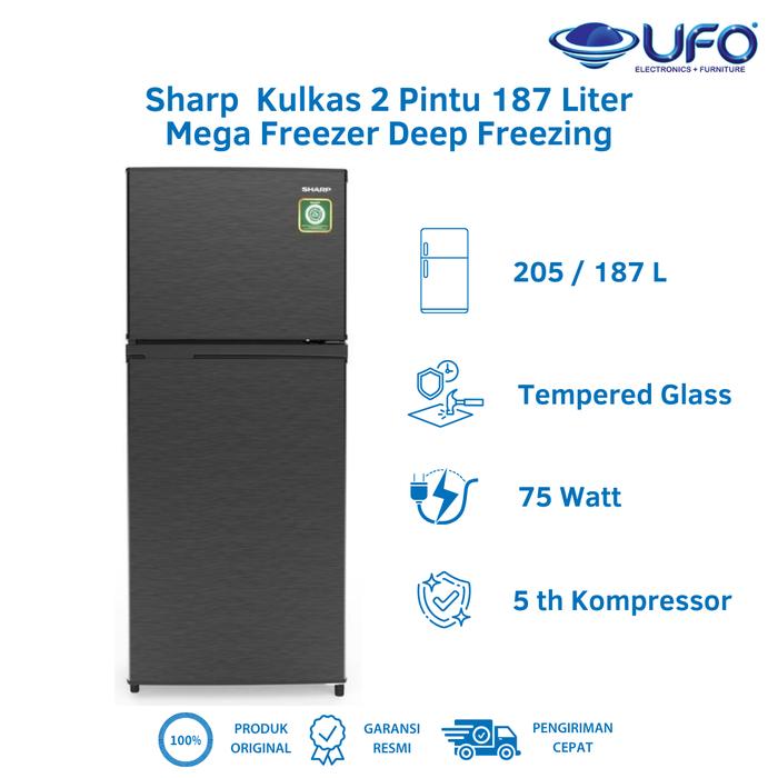 Kulkas 2 Pintu Sharp SJ236MNHS 187 Liter Mega Freezer Deep Freezing LED Lighting Tempered Glass