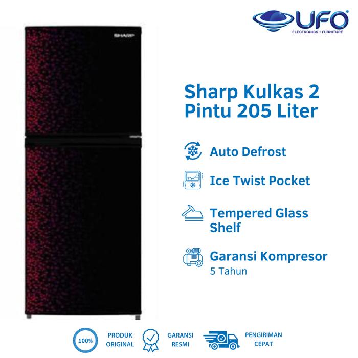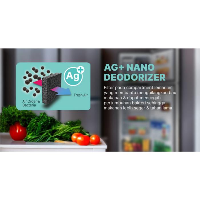 Sharp Kulkas 2 Pintu SJ236MGGR Desain Geometris Biru dengan Freezer Besar & LED Lampu G+ Nano Deo