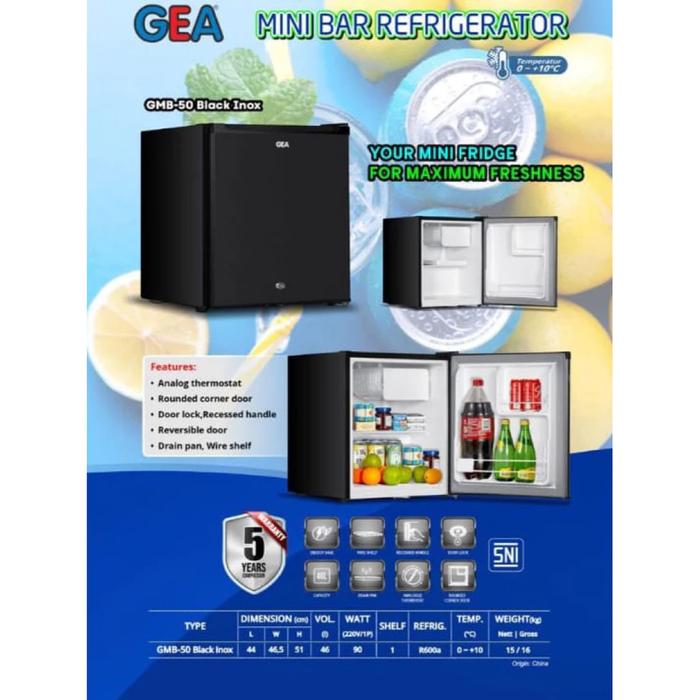 Kulkas Mini Bar GEA 1 Pintu GMB-50 MATT GREY INOX BLACK INOX 46 L - Batam